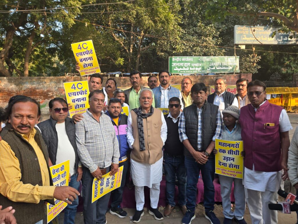 जंतर मंतर धरने में पूर्व मुख्यमंत्री भूपेश बघेल भी शामिल हुए। प्रतिनिधिमंडल ने केंद्रीय नागर विमानन मंत्री राममोहन नायडू को भी ज्ञापन सौंपा। जंतर मंतर धरना सभा को पूर्व मुख्यमंत्री भूपेश बघेल, पूर्व महापौर रामशरण यादव और पूर्व सभापति शेख नजीरुद्दीन ने भी संबोधित किया। धरने में शामिल प्रमुख रूप से रामशरण यादव, सुदीप श्रीवास्तव, अशोक भंडारी , बद्री यादव, समीर अहमद, मनोज श्रीवास, विजय वर्मा, गोपी राव, नरेंद्र बोलर राजेंद्र शुक्ला आदि प्रमुख रूप से उपस्थित थे।